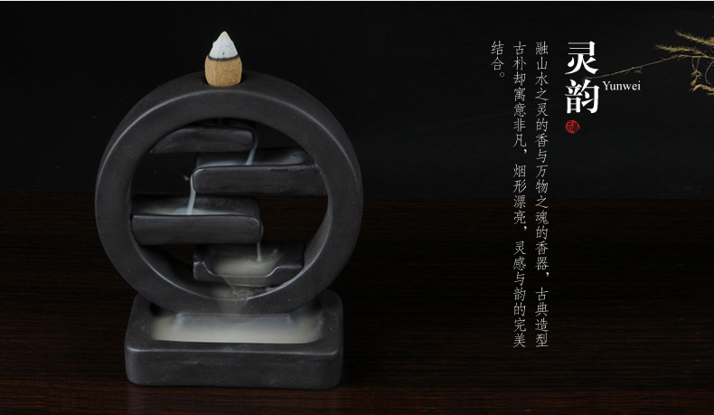 Курильница в старинном стиле на деревянной подставке из исинской глины, для конусов-благовоний с обратным потоком. Длина: 14.4 см, ширина 5 см, высота 12,8 см