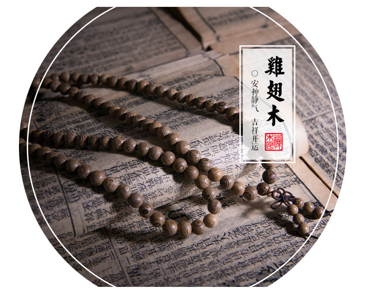 Дерево Венге, обладает приятным ароматом, антисептическими свойствами. Возраст деревьев 200-300 лет. Диаметр бусин 6 мм, 108 бусин.