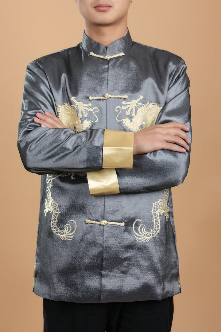 Рубашка в классическом китайском стиле из нейлона. Драконы вышиты шелковыми нитками.
